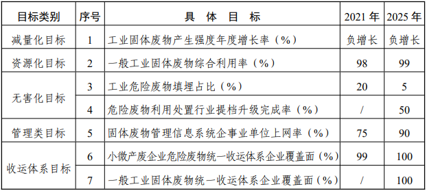 表 1 浙江省 2022-2025 年工業固體廢物污染防治主要目標