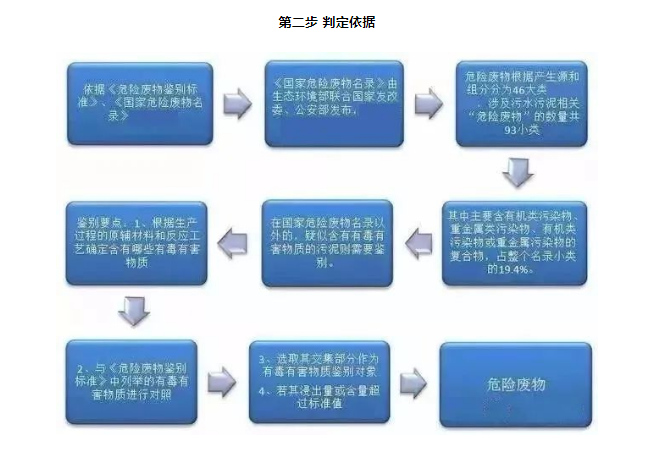 依據由環境保護部聯合國家發改委、公安部發布自2021年1月1日起開始施行的《國家危險廢物名錄》和《危險廢物鑒別標準-通則》,結合住建部、環保部、科技部于2009年2月28日聯合發布的《城鎮污水處理廠污泥處理處置及污染防治技術政策(試行)》,五步即可判定污水污泥是否屬于危險廢物,如下圖所示: