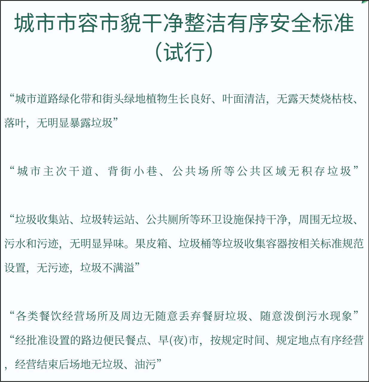 住建部剛剛新發(fā)布的《城市市容市貌干凈整潔有序安全標準(試行)》詳細規(guī)定了,什么才算得上“干凈、整潔”的市容。